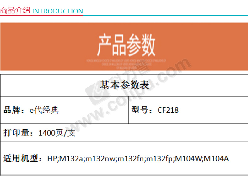 e代经典瓶装碳粉e-CF218黑色20支/箱适用惠普HPM104aM104wM132sNW/fw/fnCLP瓶装碳粉 自营