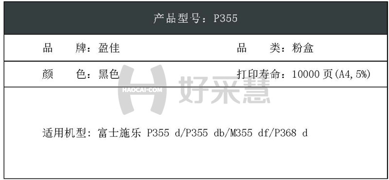 盈佳(YJ)P355粉盒黑色10000页(A4,5%)适用富士施乐P355d/P355db/M355df/P368d 自营