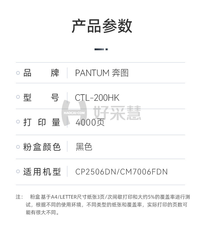 奔图(PANTUM)CTL-200HK黑色墨粉盒(适用于:CP2500DN/CP2506DN/CM7006FDN)(单位:支) 自营