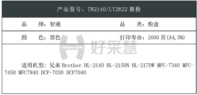 智通(ZT)TN2140/LT2822黑粉粉盒PLUS系列黑色2600页(A4,5%)适用兄弟BrotherHL-2140HL-2150NHL-2170WMFC-7340MFC-7450MFC7840DCP-7030DCP7040 自营