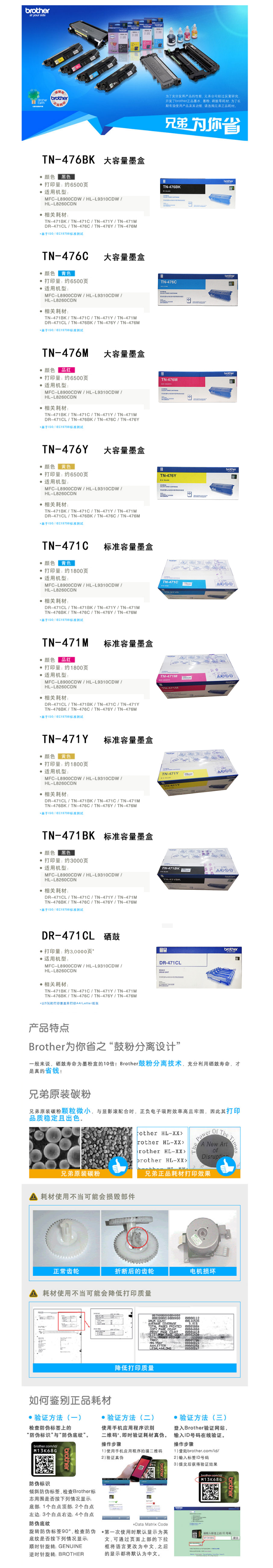 兄弟(brother)TN-471Y黄色墨粉盒约1800页适用HL-L8260CDN/9310/8900CDW机型 自营