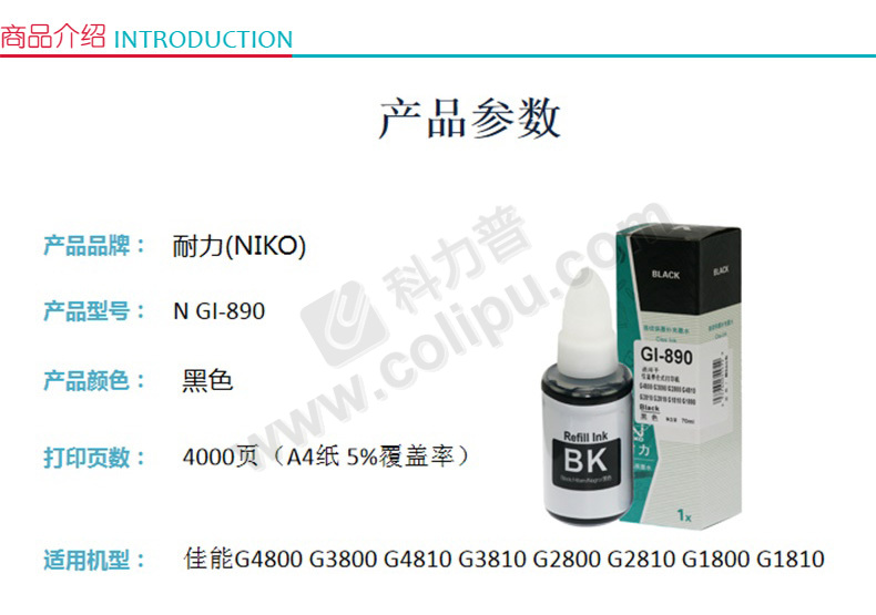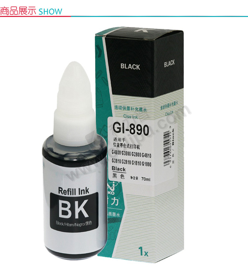 耐力NIKO连供墨水GI89070ml黑色适用于佳能/CanonCLP连供墨水 自营