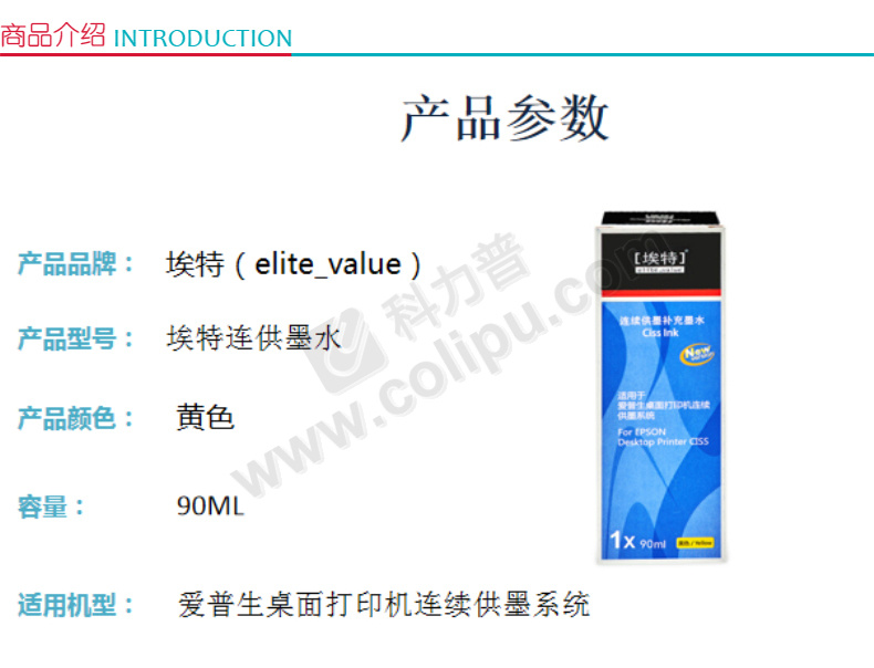 埃特Elite连供墨水适用于爱普生/Epson桌面打印机连续供墨设备黄色10个起订CLP连供墨水 自营