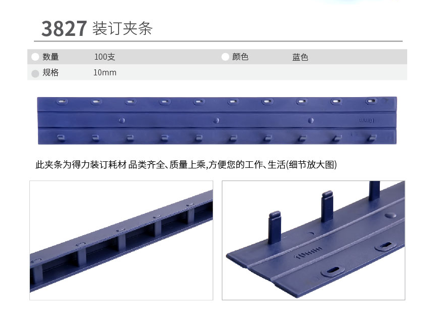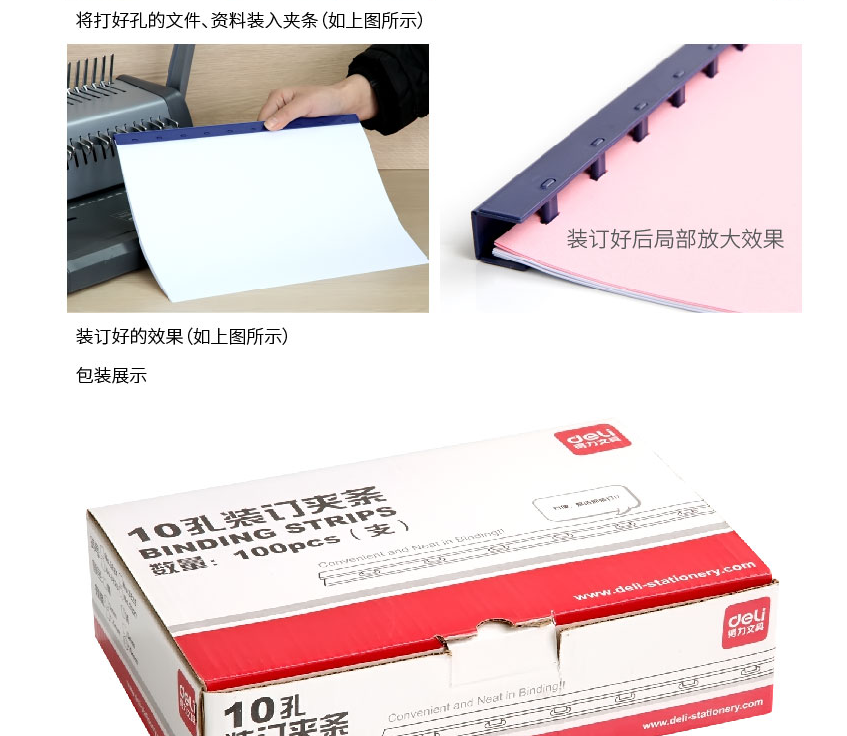 得力(deli)382710孔装订夹条(黑)300*10mm(100支/盒) 自营