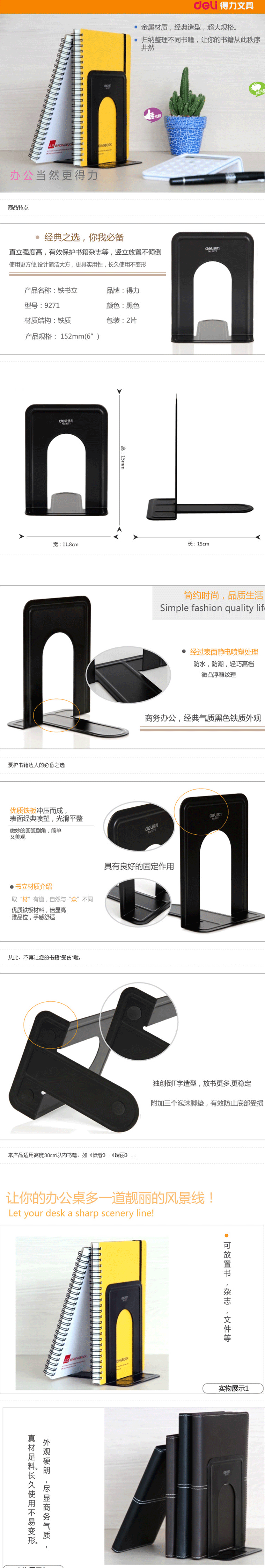 得力小号铁书立92716寸书挡书架书夹书靠 自营