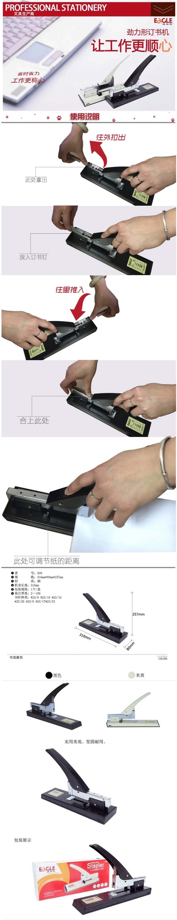 益而高939加厚重型订书器可订210页颜色随机 自营