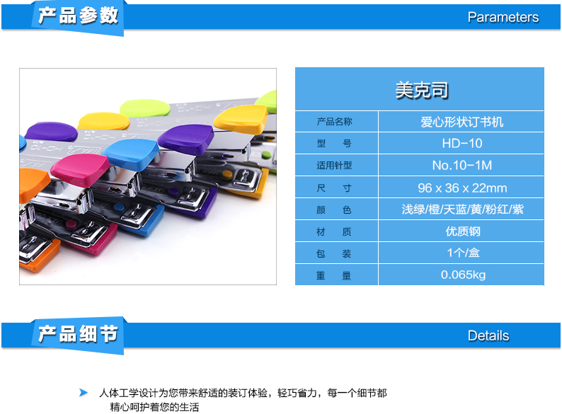 美克司MAX-HD-10NX订书机订书器带起钉器可订20张颜色随机---1个装+送5小盒钉 自营
