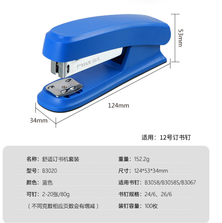 齐心(Comix)B302012#办公订书机3件套(订书器+订书钉+起钉器)办公用品蓝色 自营
