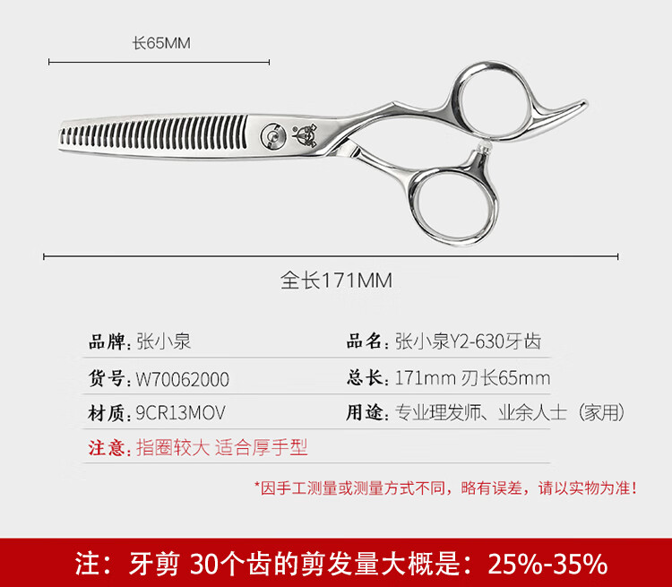 张小泉Y系列牙剪子发廊美发工具家用美发剪刀理发器剪发器6寸大指圈专业理发剪刀W70062000 自营