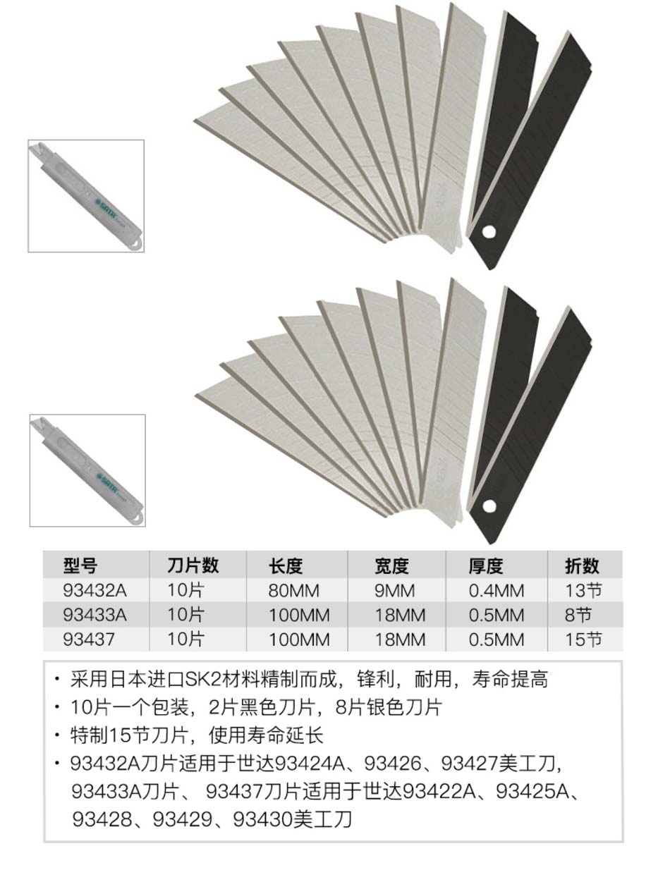 世达93433A美工刀片8节18X100MM10片/盒 自营
