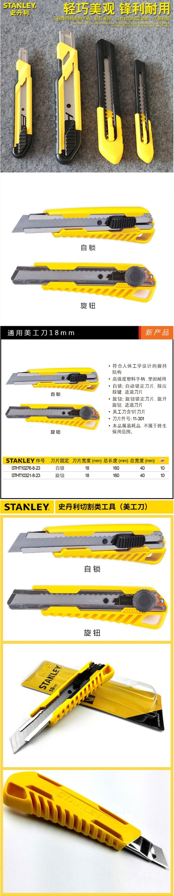 史丹利STHT10276-8-23通用自锁美工刀18mm 自营